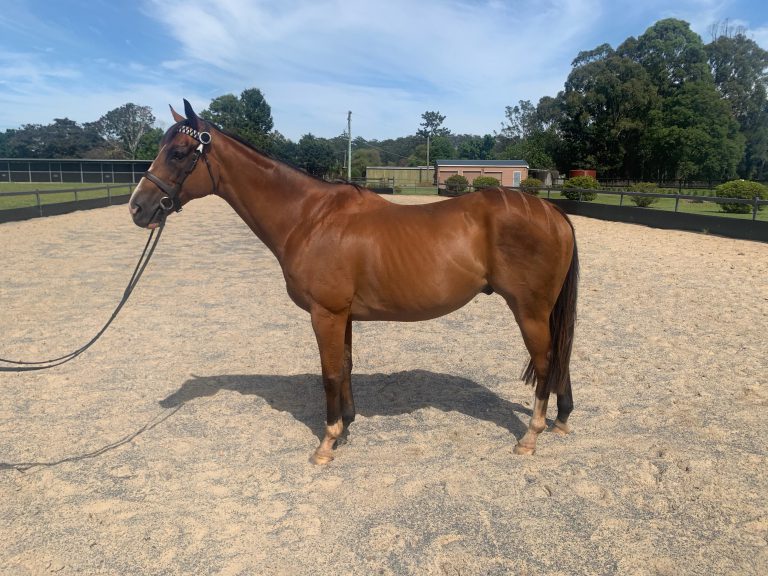 Lovely Chap by name, a lovely chap by nature. This 10yo High Chaparral x Delovely gelding is 15.3hh of sweetness. He’s light on his feet and would flourish in a dressage or showing home. Due to a previous knee injury, he is not suitable for jumping. Chappy requires an experienced, soft rider to get the best out of him. Fun fact – Team Thoroughbred Re-Educator Cassie Schmidt rode this horse in a race when she was a jockey!
